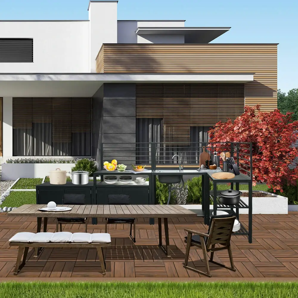 - Modular Design-- All domi kitchen pieces are modular, freely combined according to your preference. Allowing you to create an outdoor kitchen to perfectly fit your unique patio or deck space.