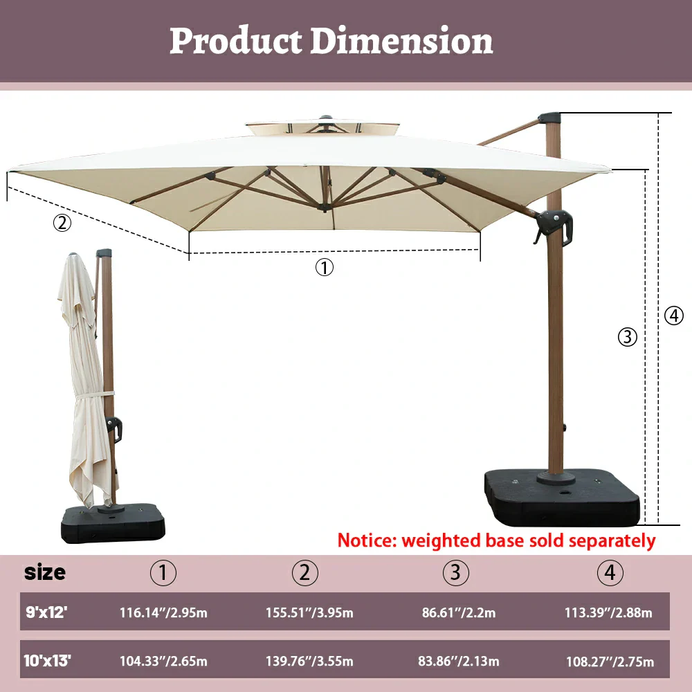 Domi Outdoor Living Cantilever Umbrella, a stylish and functional addition to your outdoor space. Designed for ultimate convenience and durability, this umbrella features a range of impressive characteristics that make it a must-have for any patio, deck, or garden.