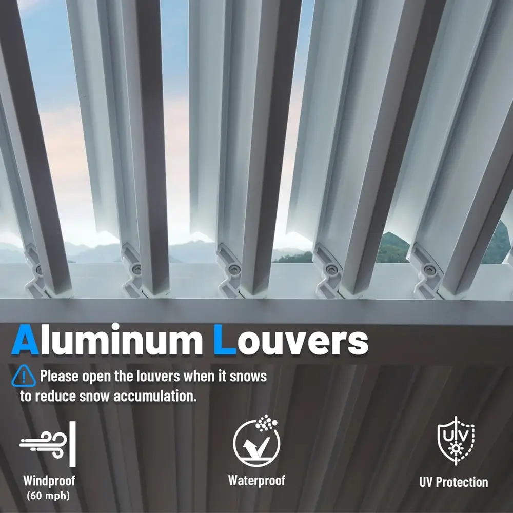 - 🤍🏡Warm Reminders- Ensure snow doesn't accumulate on the louvered roof. In heavy snowfall or extreme weather conditions, please fully open or remove the louvers to prevent potential damage to your pergola.❤️